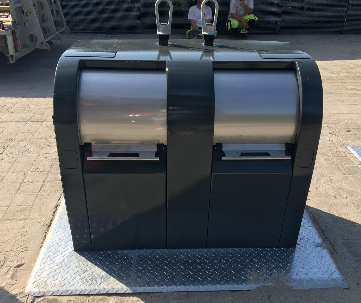 Podstawa 1600x1600 mm tworzy część kontenera, po której można chodzić. Jej wykończenie powierzchni może być wykonane z kostki brukowej, stali ocynkowanej o strukturze poprawiającej przyczepność. 4/6 mm lub inna powierzchnia, np guma.