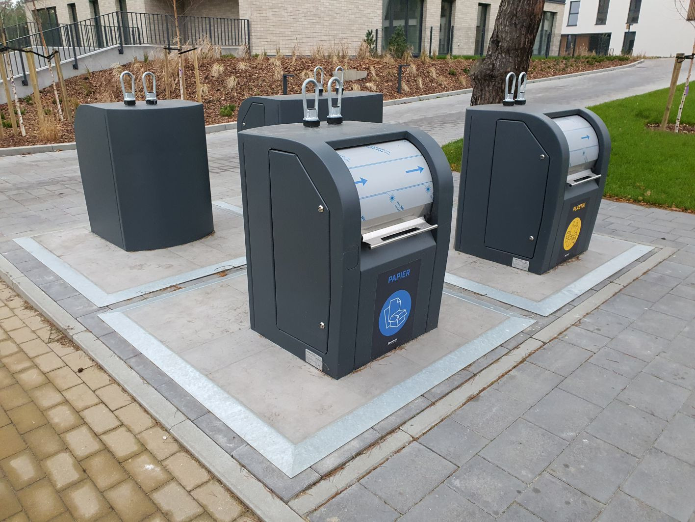 Podziemne pojemniki mogą być również używane w obszarach o dłuższych odległościach odbioru, ponieważ duża pojemność pozwala na wydłużenie interwału odbioru i obniżenie kosztów odbioru oraz transportu.